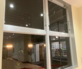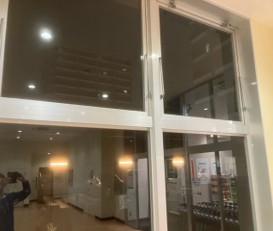 福岡県福岡市のショッピングモール施設の施設内の通路床、ガラス清掃を担当させていただきました。