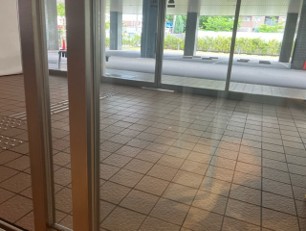 大阪府豊中市の医療施設内の風除室と消毒液の飛び散り部分の清掃を担当させていただきました。